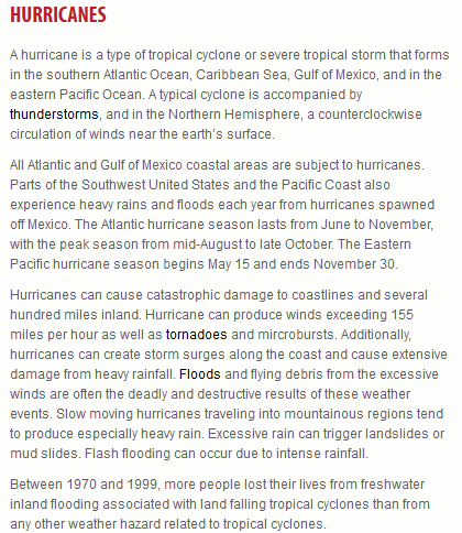(Article Excerpt and Image from Hurricanes, City of San Antonio)